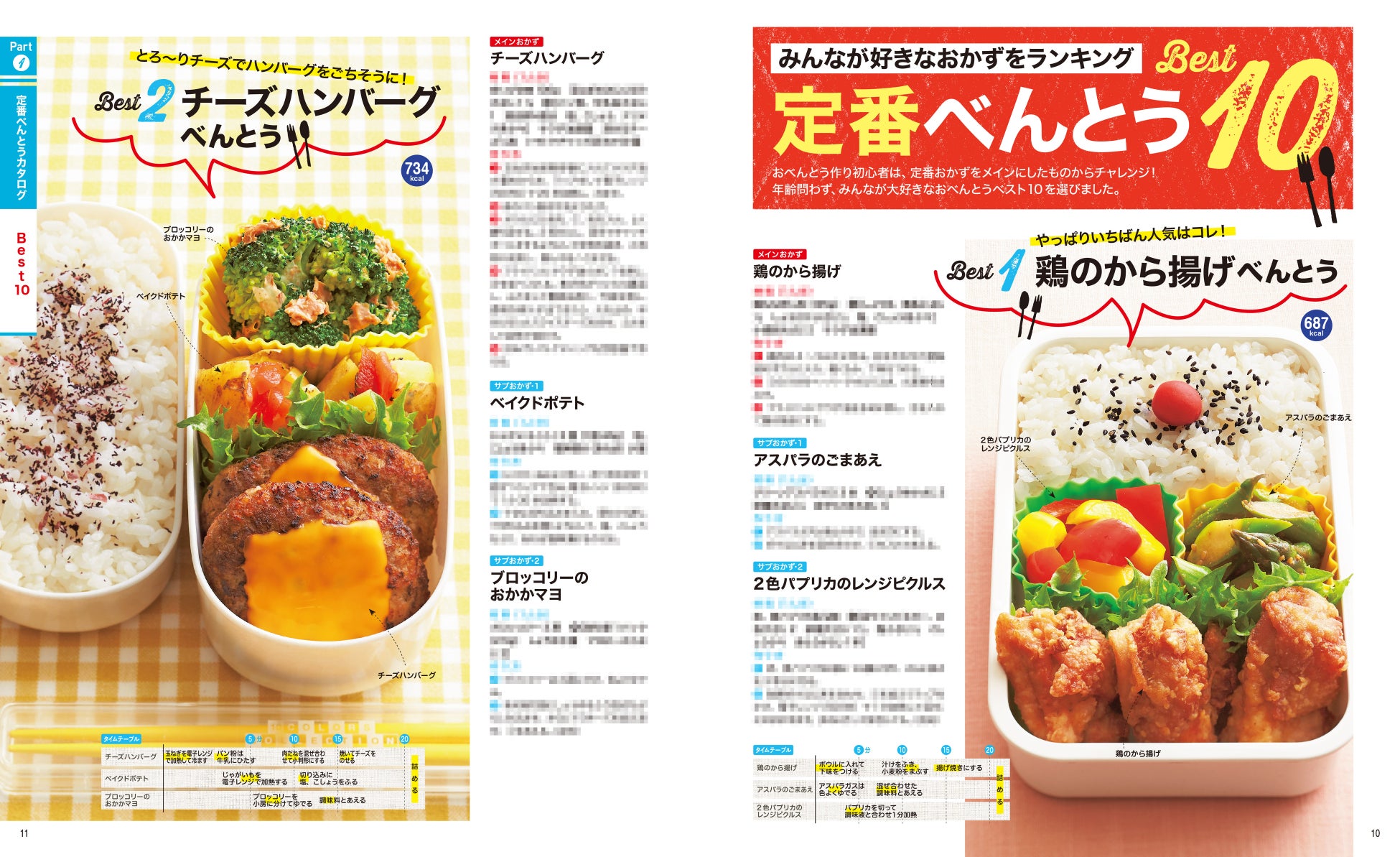 Part1ではみんなが大好きな定番べんとうを紹介します。鶏のから揚げ、チーズハンバーグ、豚肉のしょうが焼きなどおべんとうに入っていたらうれしくなるレシピがばかりを集めました。