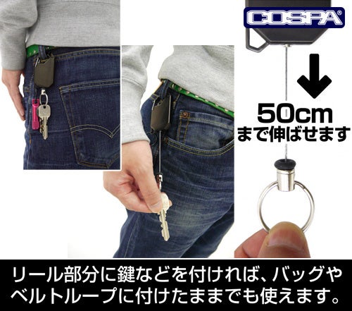 ・リールは約50cmまで伸ばせる仕様で、毎日使うカギ類を付ければとても便利です。