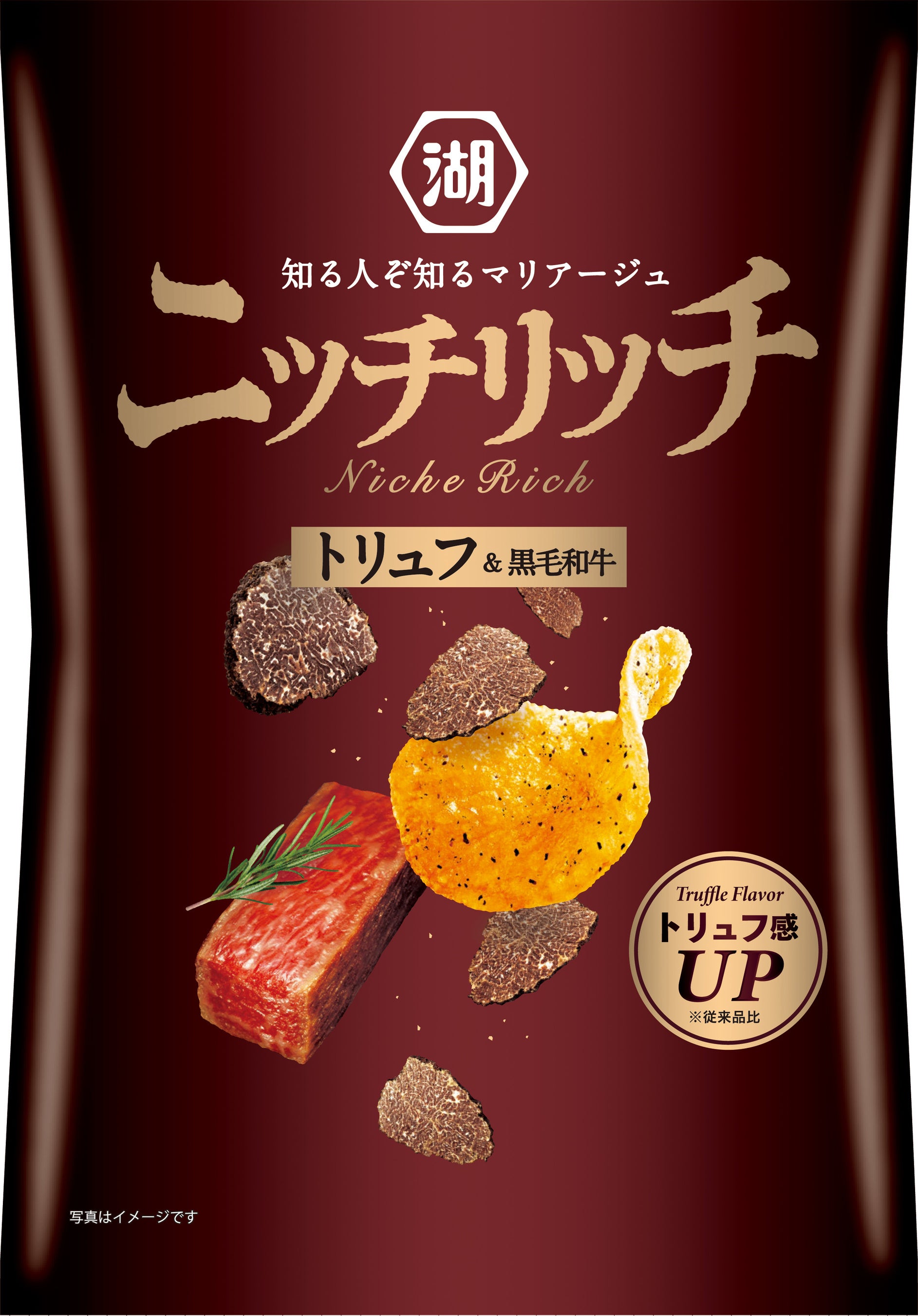 株式会社湖池屋(本社:板橋区/社長:佐藤章)は、とっておきの食材を、知る人ぞ知る至福の食べ合わせで奥深く味わう創作ポテトチップス「ニッチリッチ」ブランドにて、昨年12月にコンビニエンスストア限定で発売し、ご好評をいただいた「ニッチリッチ トリュフ&黒毛和牛」、「ニッチリッチ オマール海老&北海道ホタテ アヒージョ仕立て」をさらに美味しく進化させ、2022年6月20日(月)より全国・全チャネルにて発売します。