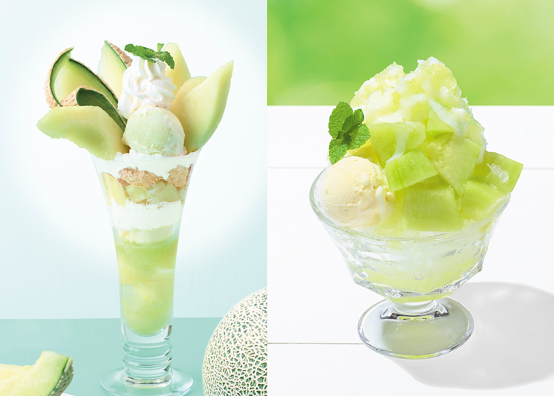 【銀座コージーコーナー】豊かな香りと上品な甘み、果汁したたる茨城県産メロン。贅沢に使用したパフェとかき氷が5月26日から登場