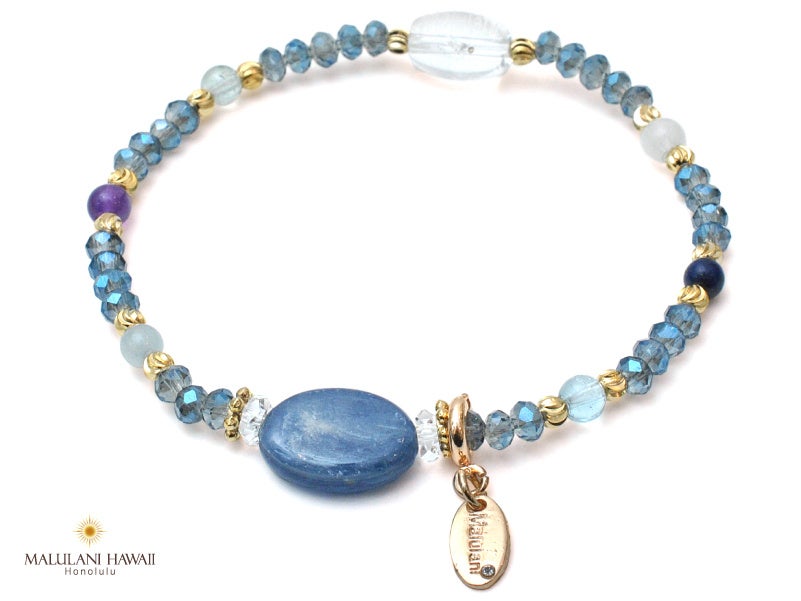 霊性を高め、シンプルなものの見方を習慣付けてくれるカイヤナイトをメインに、高次元のエネルギーを宿す石で紡いだブレスレット。