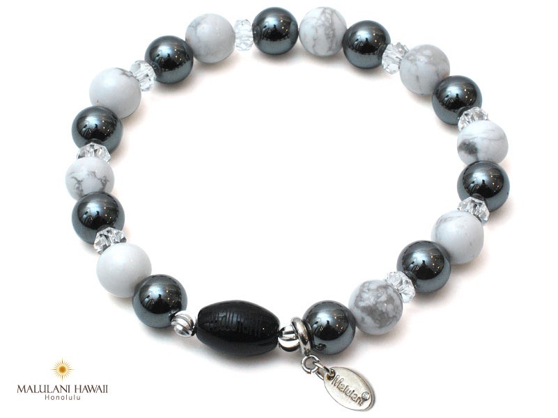 強力な守護作用を持つといわれるヘマタイトとオニキス、再生と浄化のハウライトで仕立てた、邪気払いや厄除けに最適なブレスレット。