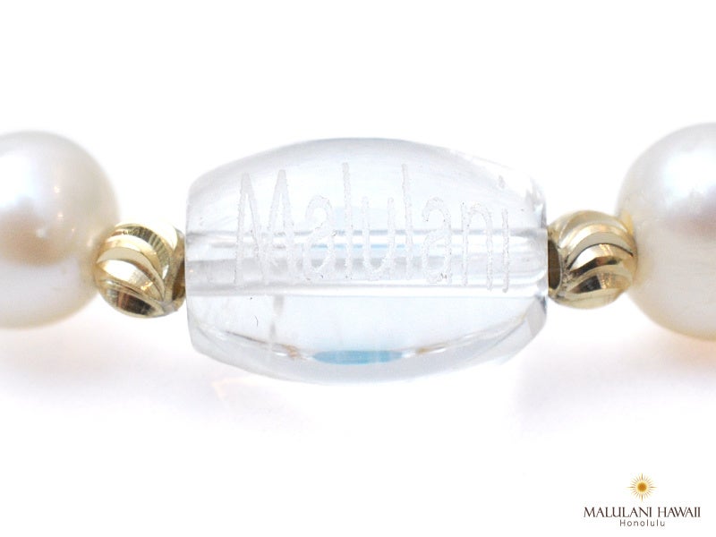 Malulaniと刻印の水晶が入るブレスレットには、プラス2,200円で、水晶の裏面にお好きな文字を英数字で6文字まで刻むことができます。