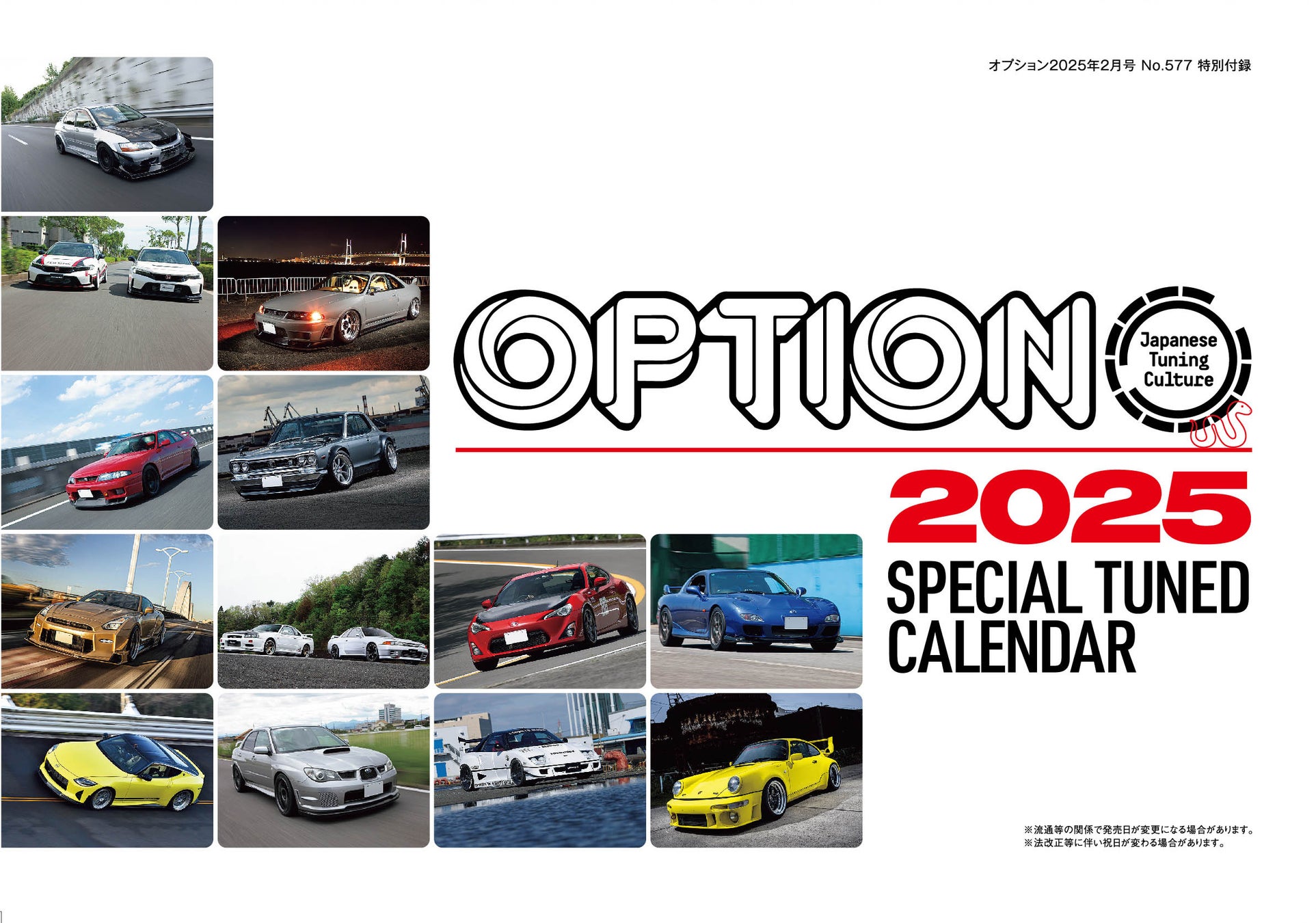 オプション2025年2月号発売!特集:時代に逆行するチューニングトレンド『排気量至上主義』。「SPECIAL TUNED CALENDAR」付き!