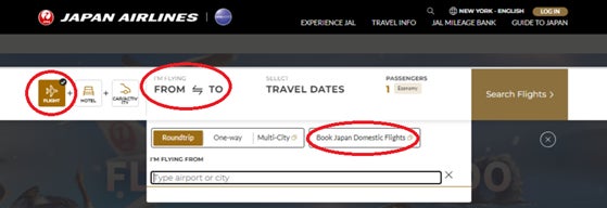 航空券のみご購入の方は「FLIGHT」のみをチェックし「Book Japan Domestic Flights」を選択すると、JAPAN EXPLORER PASS購入サイトで海外からの方専用の航空券をお求めいただけます(国際線航空券所持者に限ります)。