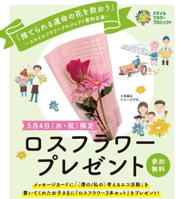 「捨てられる運命の花を救おう」フラワーロス配布イベント/みどりの日に合わせて西武所沢S.C.で開催