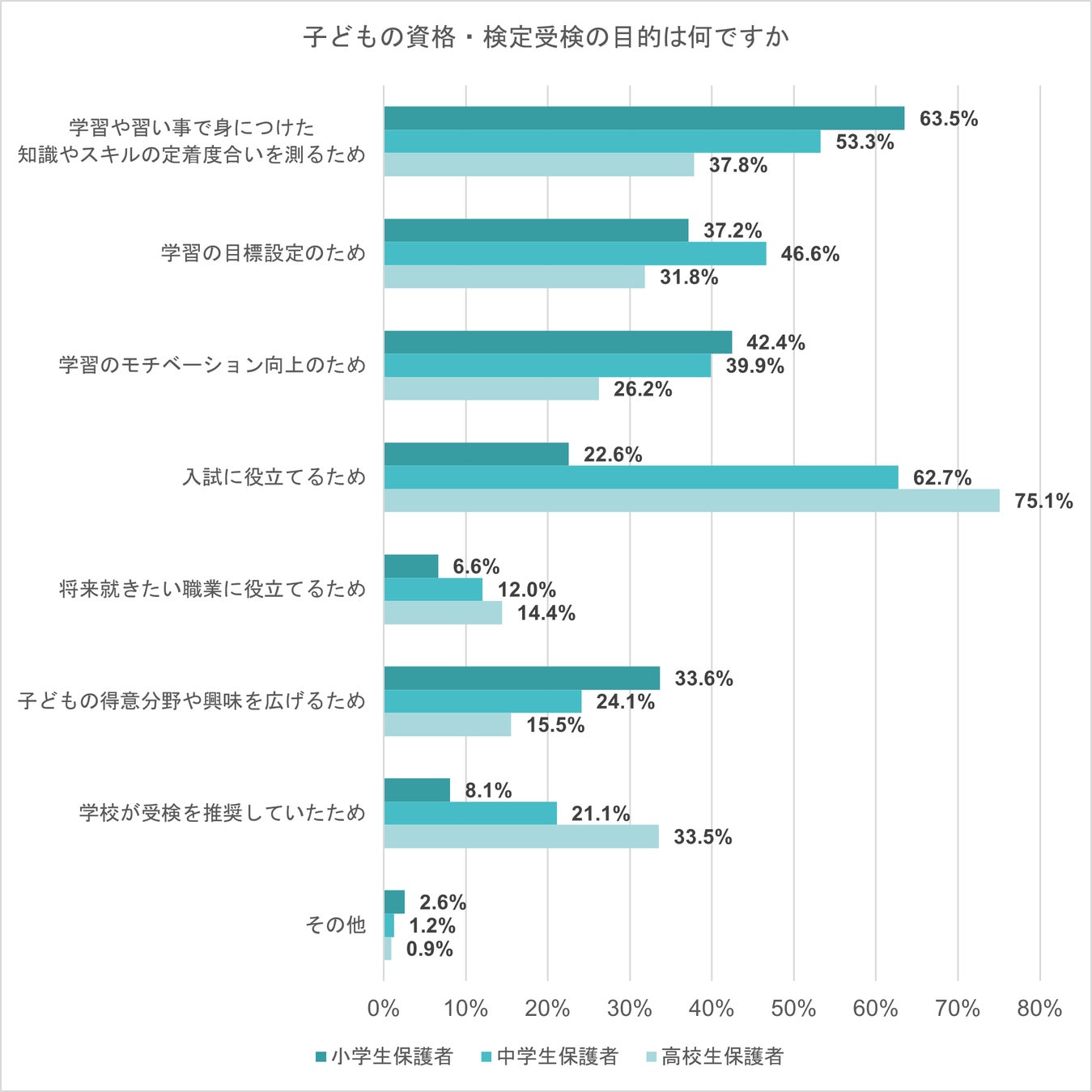 子どもがこれまでに「資格・検定試験を受検したことがある」と回答した保護者に、受検の目的を聞いた。