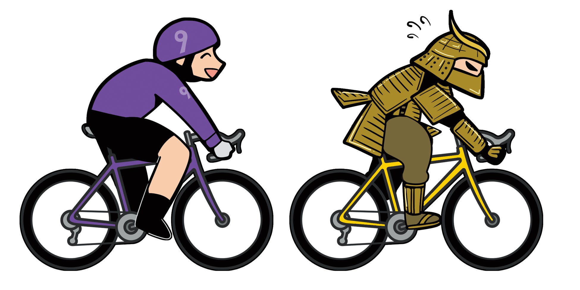 忍者だけではなく、吉田城から武将隊も参戦!武将隊も甲冑を着た状態でママチャリにて参戦。他では見られない異色の対決に、プロの競輪選手が見事勝ち切ることができるかも見どころの一つ。