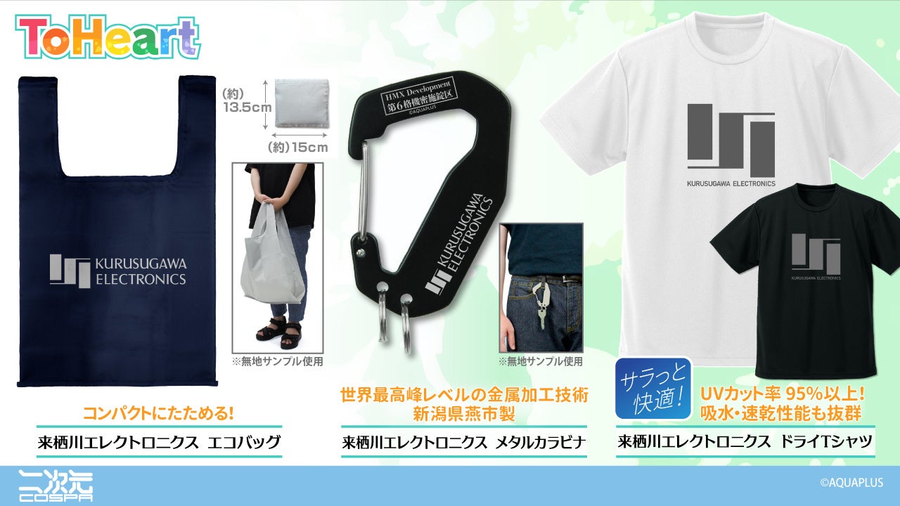 『うたわれるもの』シリーズ、『WHITE ALBUM2』、『ToHeart2』より、あなたのお部屋やデスクを彩る「アクリルアートスタンド」、『ToHeart』来栖川エレクトロニクス”の備品風にデザインした「エコバッグ」など新グッズが二次元コスパからラインナップいたします。