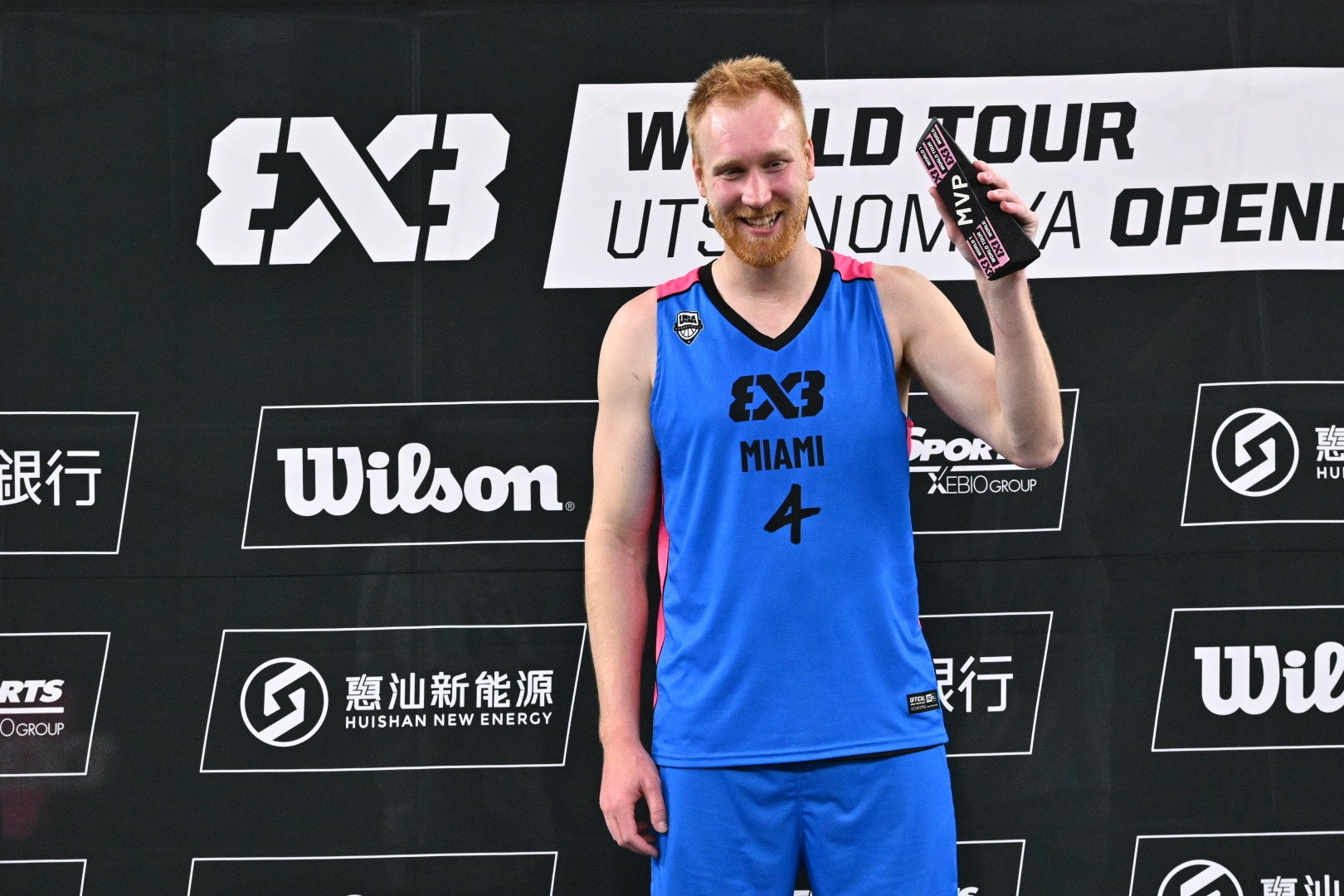MVPに輝いたのは、MIAMI(マイアミ・アメリカ)のミッチ・ハーン選手(No.4)。予選グループのUTSUNOMIYA戦では、たった10分しかない3x3の試合で、8得点5リバウンドと存在感を見せました。2日間通じて5試合で30得点を記録し、1ポイントは59%(10/17)、2ポイントは44.4%(8/18)と、高確率で得点を量産。全体の得点ランキングでも2位に輝き、見事にMVP受賞となりました。