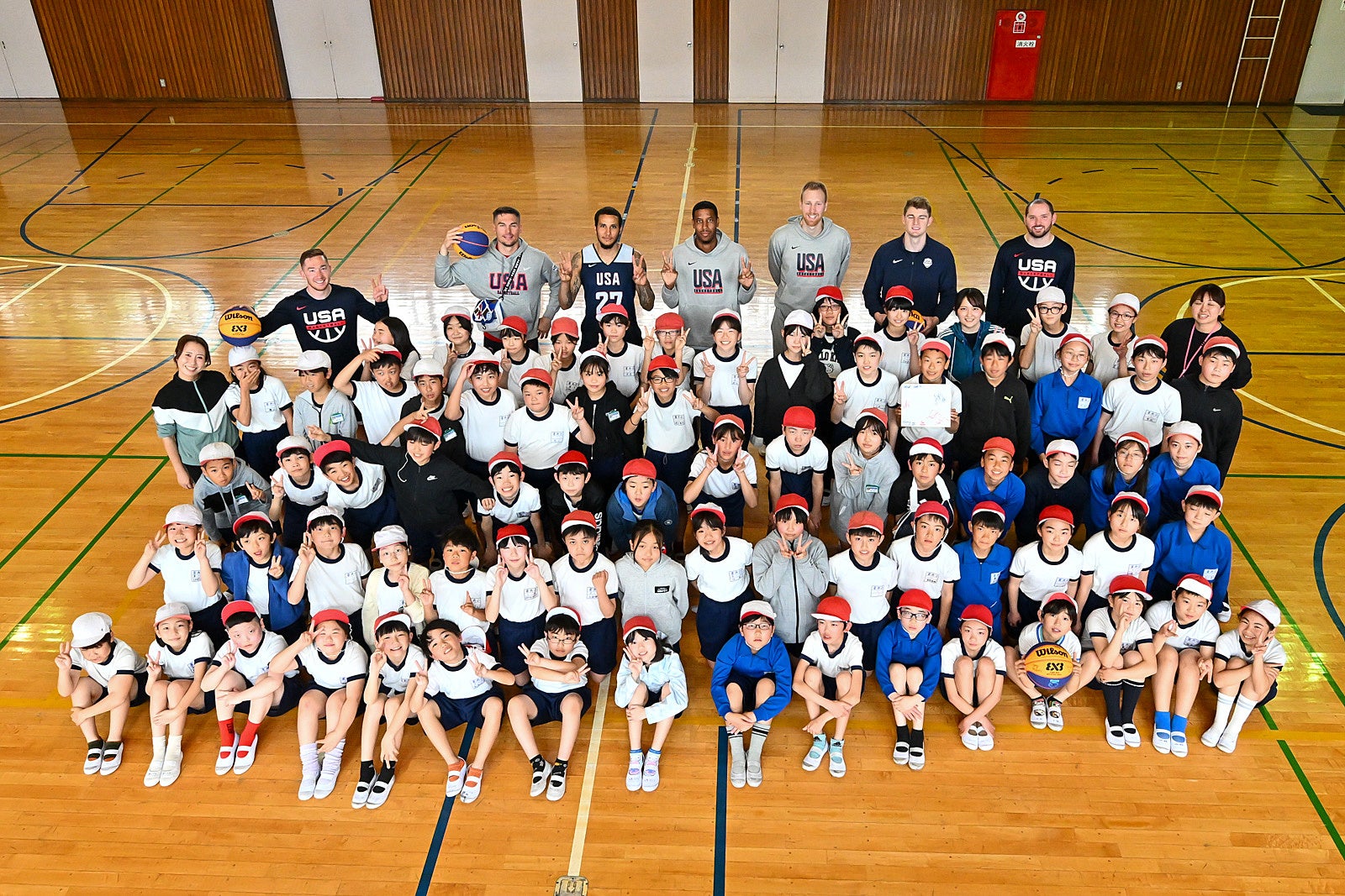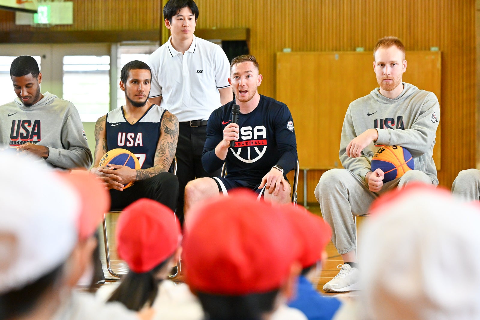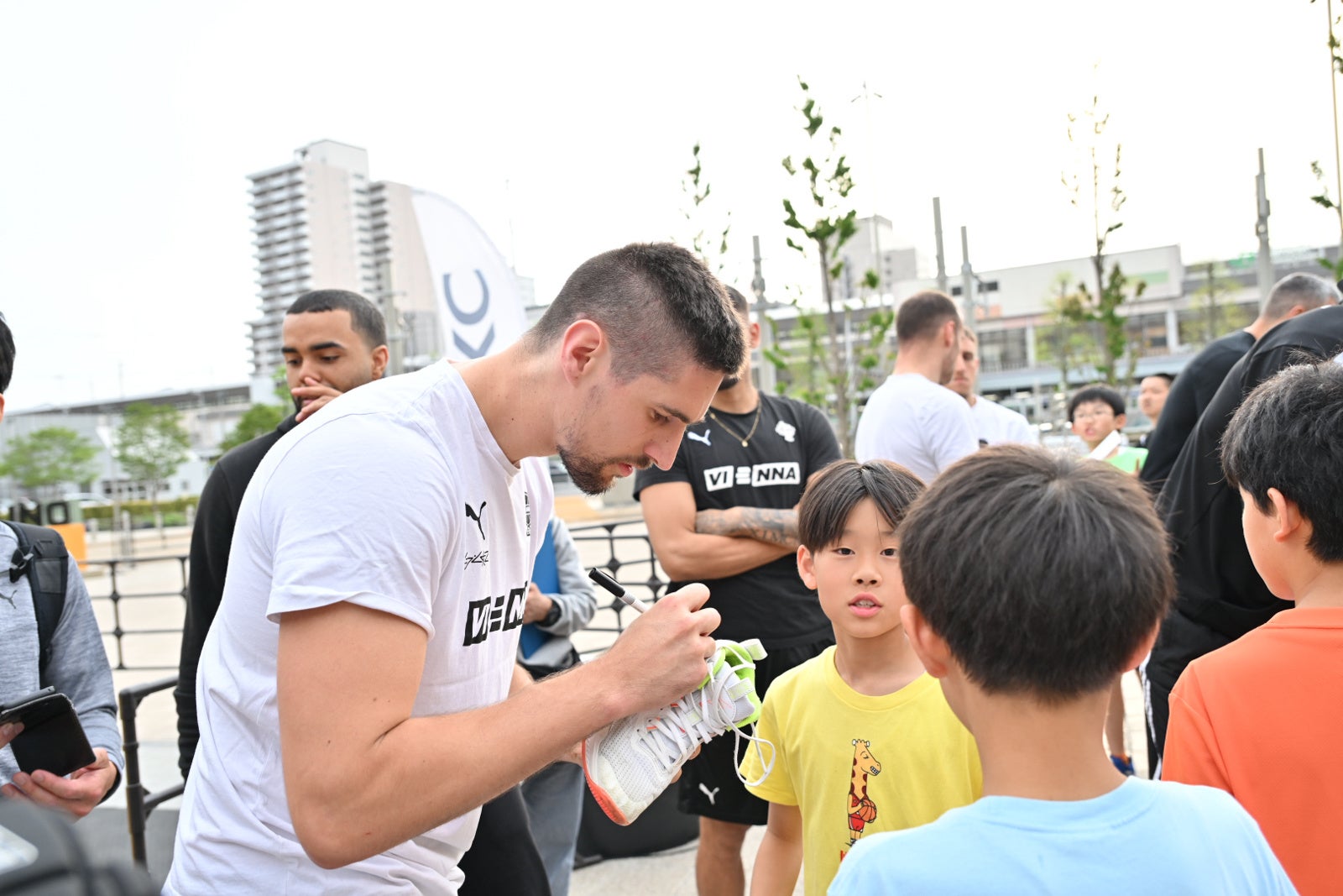 大会前日の4月25日(金)には、午前中、宇都宮市立簗瀬小学校にTOULOUSE(トゥールーズ/フランス)の選手たちが、午後は宇都宮市立姿川中央小学校にMIAMI(マイアミ/アメリカ)の選手たちがそれぞれ訪問をし、デモンストレーションや質問コーナー等を通じて子どもたちと交流。子どもたちからはサインのリクエストやハイタッチを求める姿など、2m級の大きな選手たちに憧れのまなざしを向けていました。選手たちもそれに応えるように、笑顔で挨拶やハイタッチを実施。言語の壁を越えた素敵な時間が、そこには流れていました。