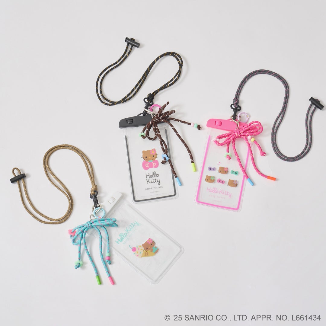 夏らしい日焼けした「ハローキティ」のプリントがポイントの防水スマホショルダー。取り外し可能なカラビナとキーホルダー付きで、自分好みにカスタムして楽しめます。