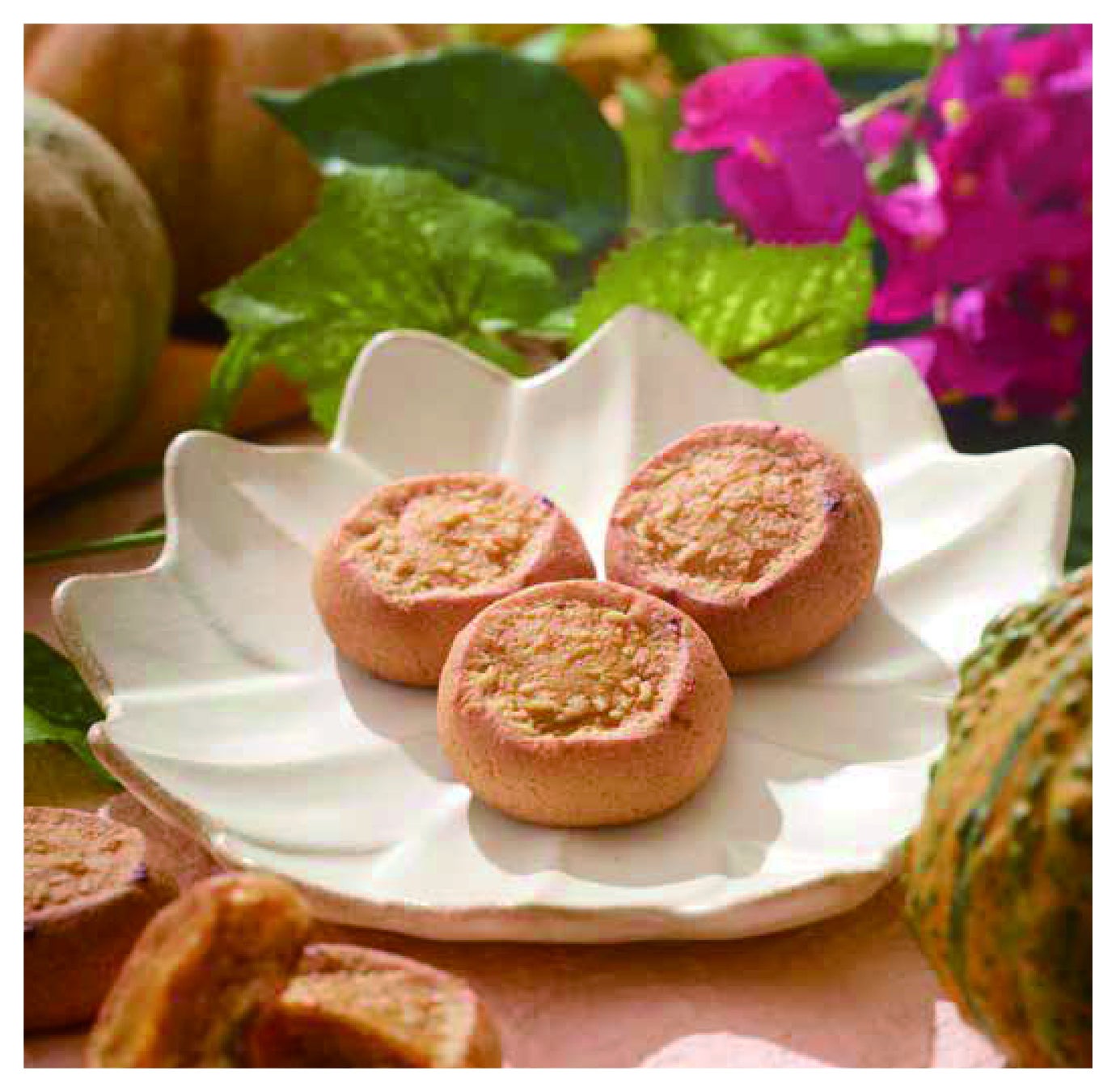 宮古島産のかぼちゃペーストをむっちりとした食感に仕上げ、バター香るタルト生地に包み、しっとり焼き上げました。かぼちゃの優しい甘さとシナモンがほのかに香るひとくちサイズのタルトです。