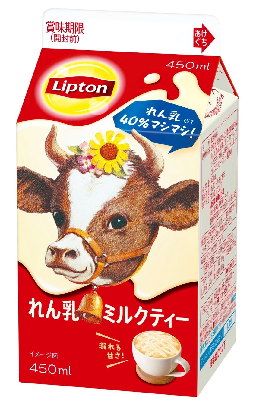 「リプトン れん乳ミルクティー」は「リプトン紙パック」シリーズの発売40年記念商品の第3弾です。発売40年の感謝の気持ちをこめて、使用する「森永ミルク 加糖れん乳」を40%増量※3しています。れん乳のしっかりとした甘さとコクのあるミルク感をお楽しみいただける一品です。