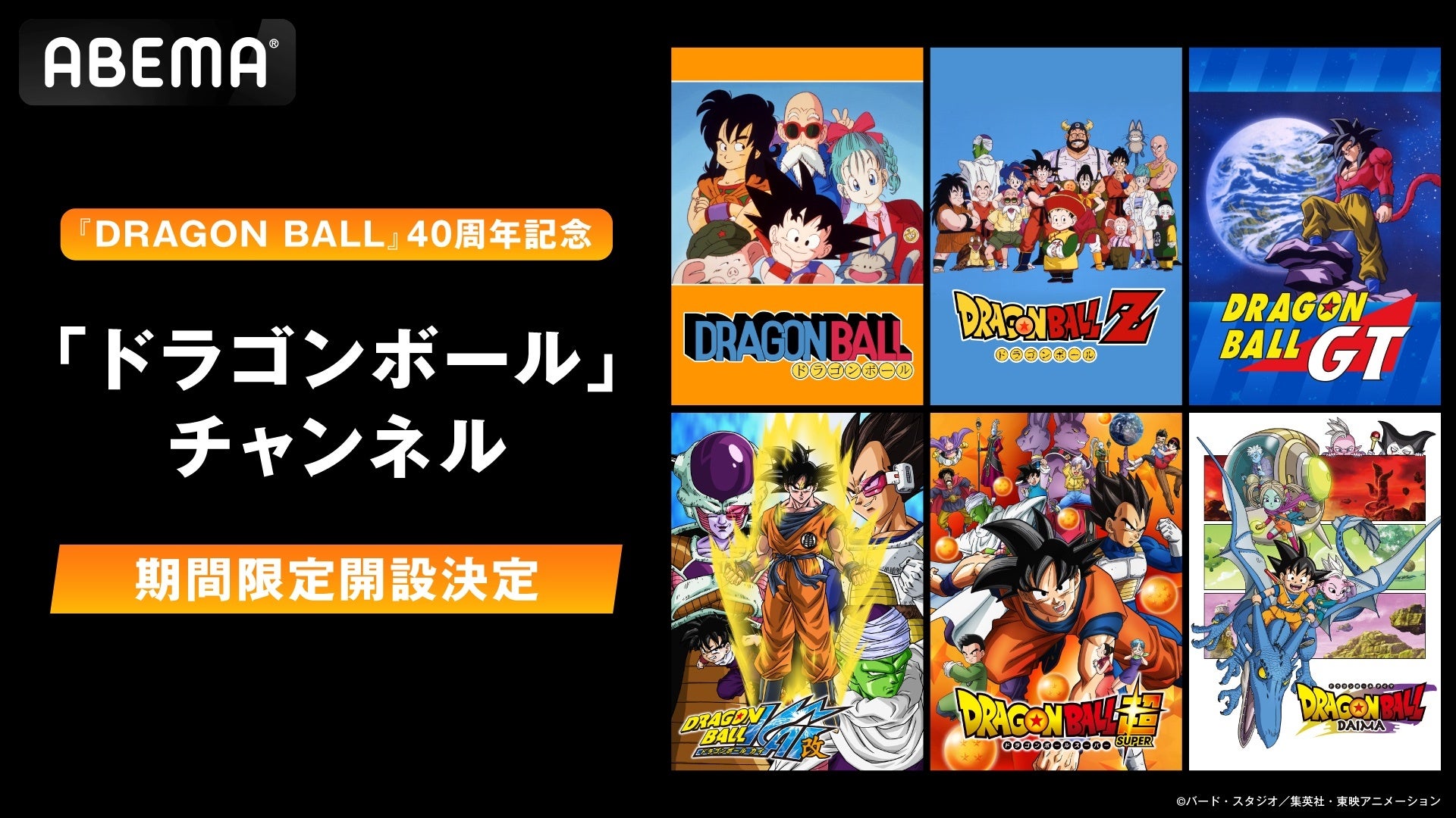 『DRAGON BALL』40周年記念!「ドラゴンボール」チャンネル、4月26日(土)に「ABEMA」に新規OPEN決定!最新シリーズ『ドラゴンボールDAIMA』を含む歴代作品を毎日無料放送!