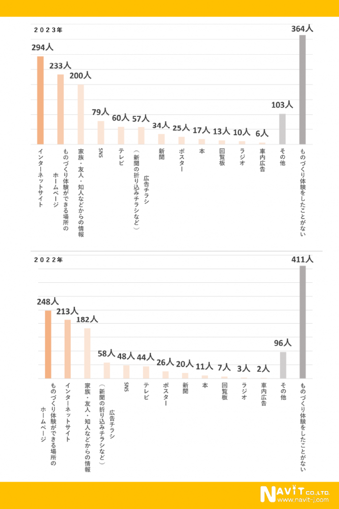 今回のアンケートでは2022年の同様のアンケートと比較しながら、どのようにものづくり体験への興味や行動が変化したかをみてきます。