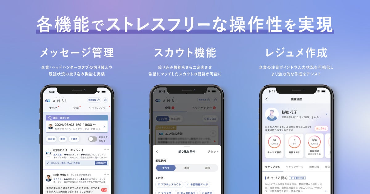 エン株式会社(本社:東京都新宿区、代表取締役会長兼社長:越智通勝)が運営する若手ハイキャリアのためのスカウト転職サービス『AMBI(アンビ)』(https://en-ambi.com/)は、2026年3月23日(月)にスマホアプリをフルリニューアルしました。