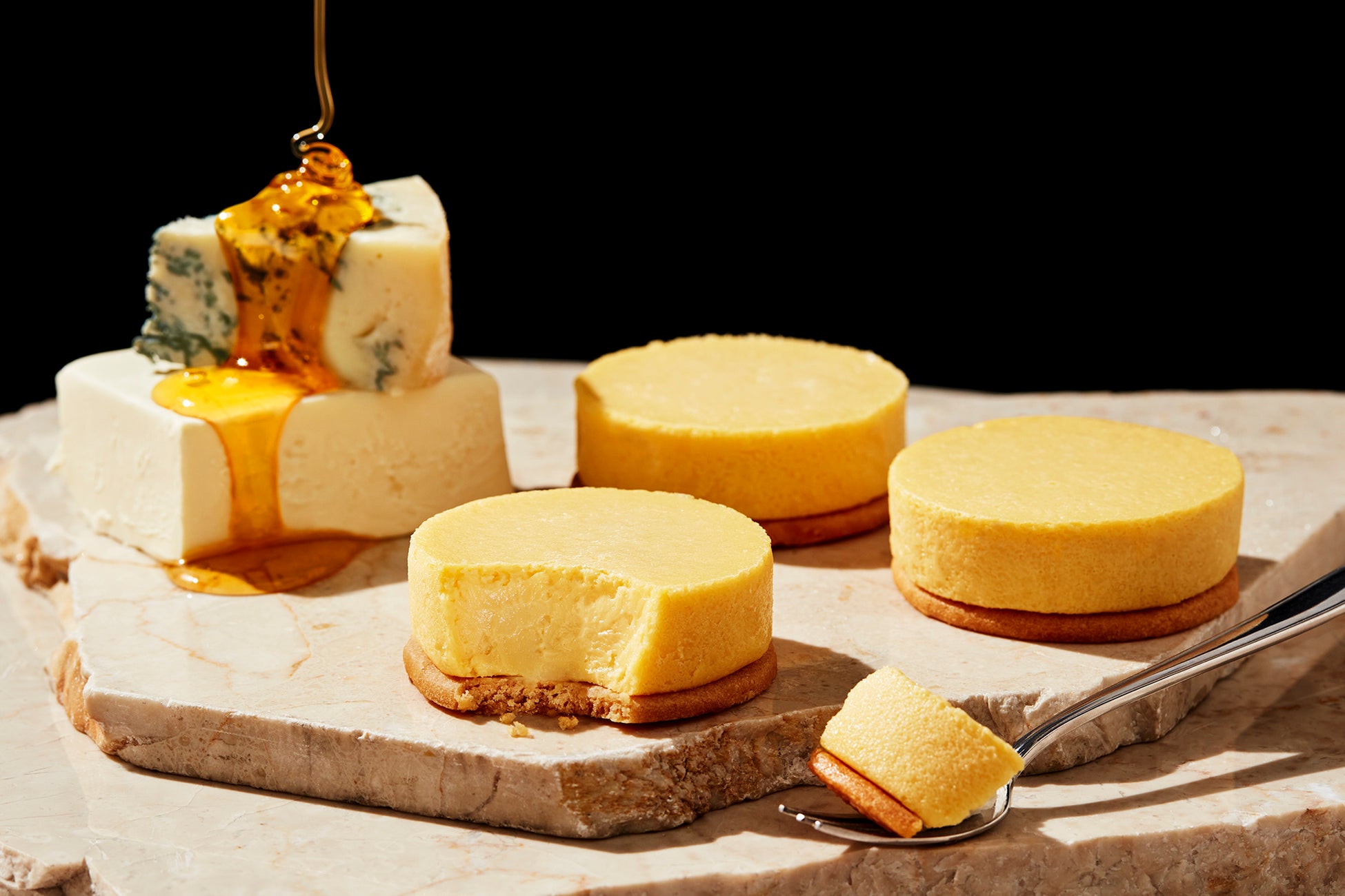 コクのあるゴルゴンゾーラと相性抜群の蜂蜜で仕上げた「フィナンシェ」、クリーミーなカマンベールチョコレートを、相性抜群の蜂蜜と北海道牛乳を練り込んだ生地でサンドした「クッキー」、まろやかな味わいのゴーダチーズと相性抜群の蜂蜜を練り込み焼き上げた、サクッほろ⾷感の「ガレット」をお楽しみいただけます。