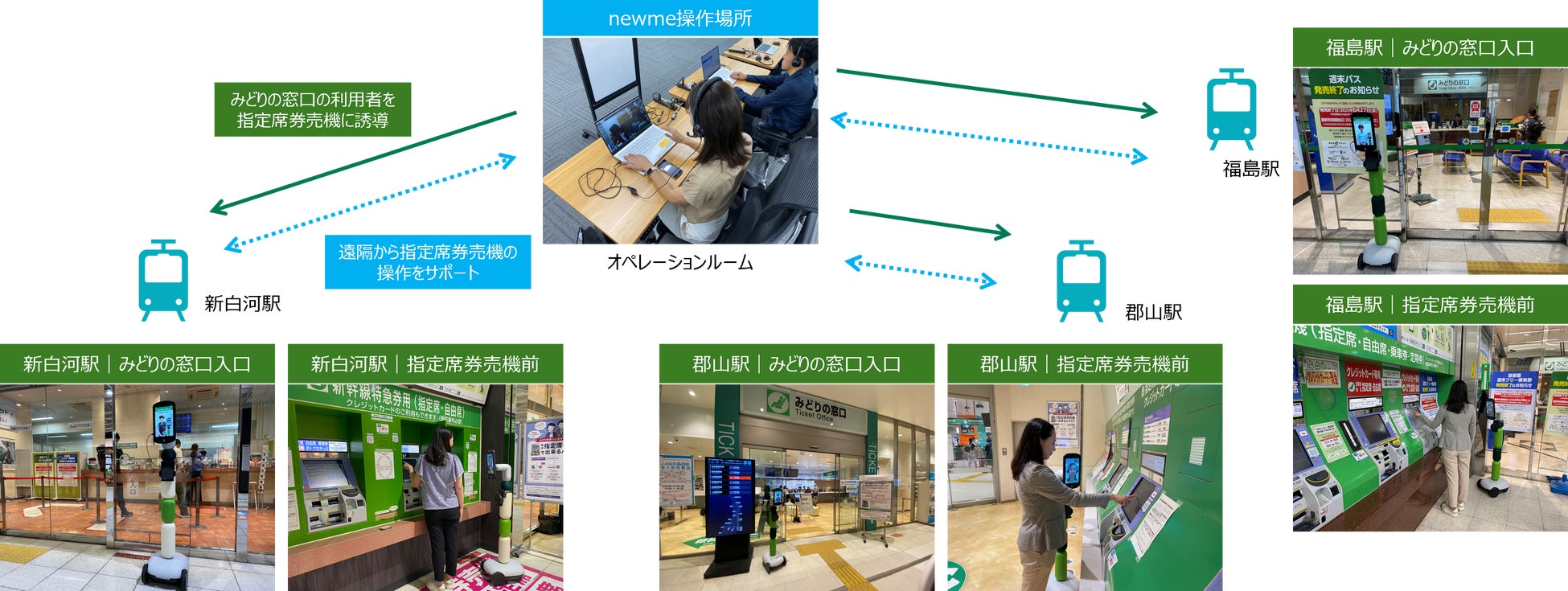 JR東日本管内の3駅(新白河駅、郡山駅、福島駅)に、avatarin(株)が独自開発したアバターロボット「newme」を設置し、avatarin(株)オフィスからの遠隔操作による案内業務を実施します。