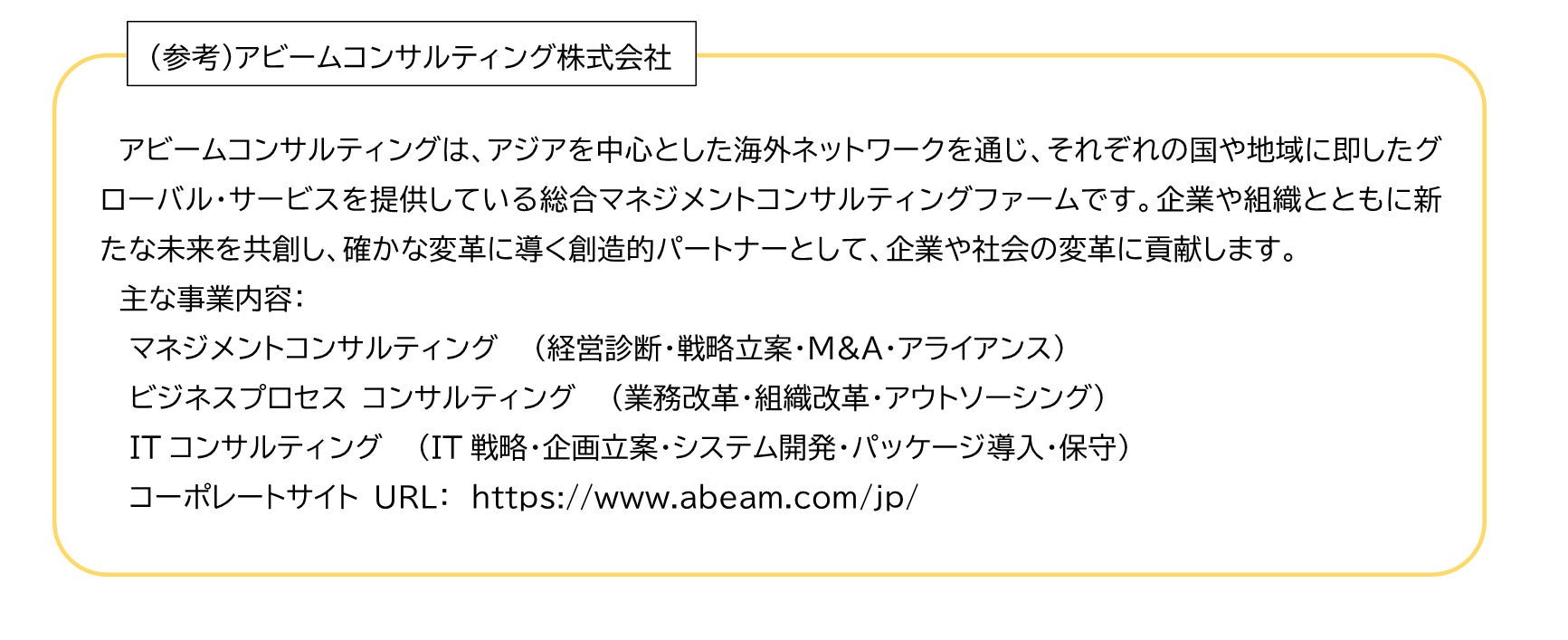 一方、アビームコンサルティングは、データ、アナリティクス、AIを活用し、様々な企業や組織の業務効 率化や生産性向上、データ起点のビジネス拡大を支援してきました。交通・運輸の領域においても、長年 にわたり業務変革からデジタルテクノロジーの活用まで幅広いコンサルティングサービスを提供し、特 に昨今課題となっている設備の老朽化や人材不足などの、社会課題を解決する新たなビジネスモデル の構築支援などを通じて、持続可能な社会の実現に貢献しています。