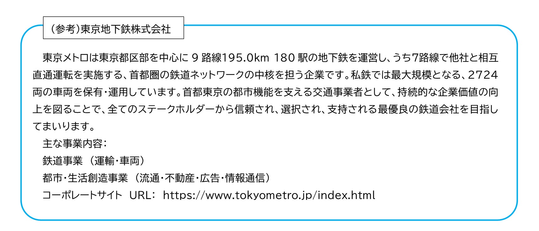 東京地下鉄株式会社(本社:東京都台東区、代表取締役社長:山村 明義、以下「東京メトロ」)とアビー ムコンサルティング株式会社(本社:東京都中央区、代表取締役社長:山田 貴博、以下「アビームコンサ ルティング」)は、7月10日付けで鉄道車両の状態基準保全(Condition Based Maintenance: 以下CBM*)の実現を目的としたデータ分析手法に関する共同研究を推進する覚書を締結しました。
