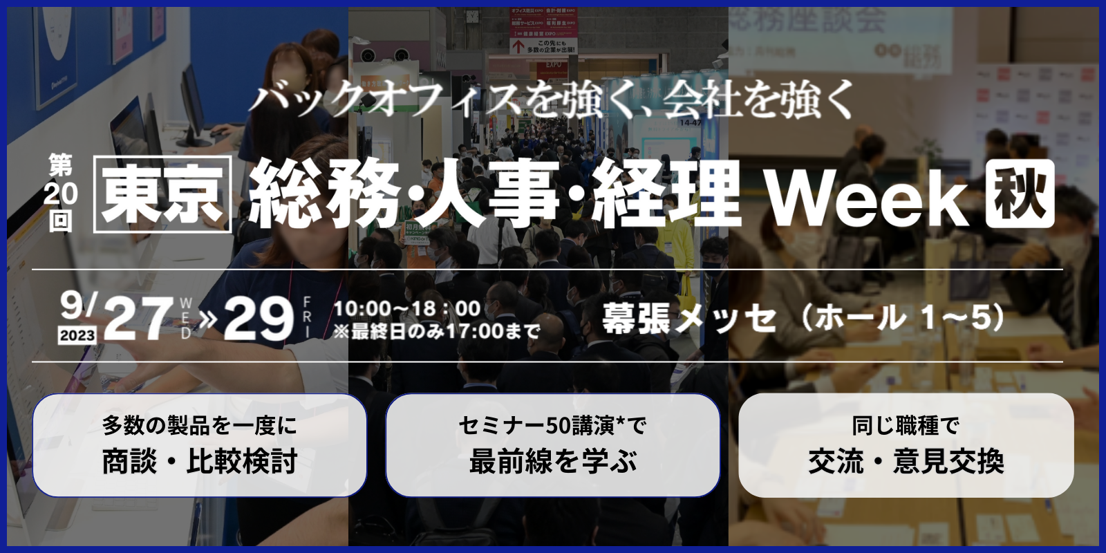 第20回 【東京】 総務・人事・経理Week[秋] 会期:2023年9月27日(水)~29日(金) 会場:幕張メッセ ホール1~5