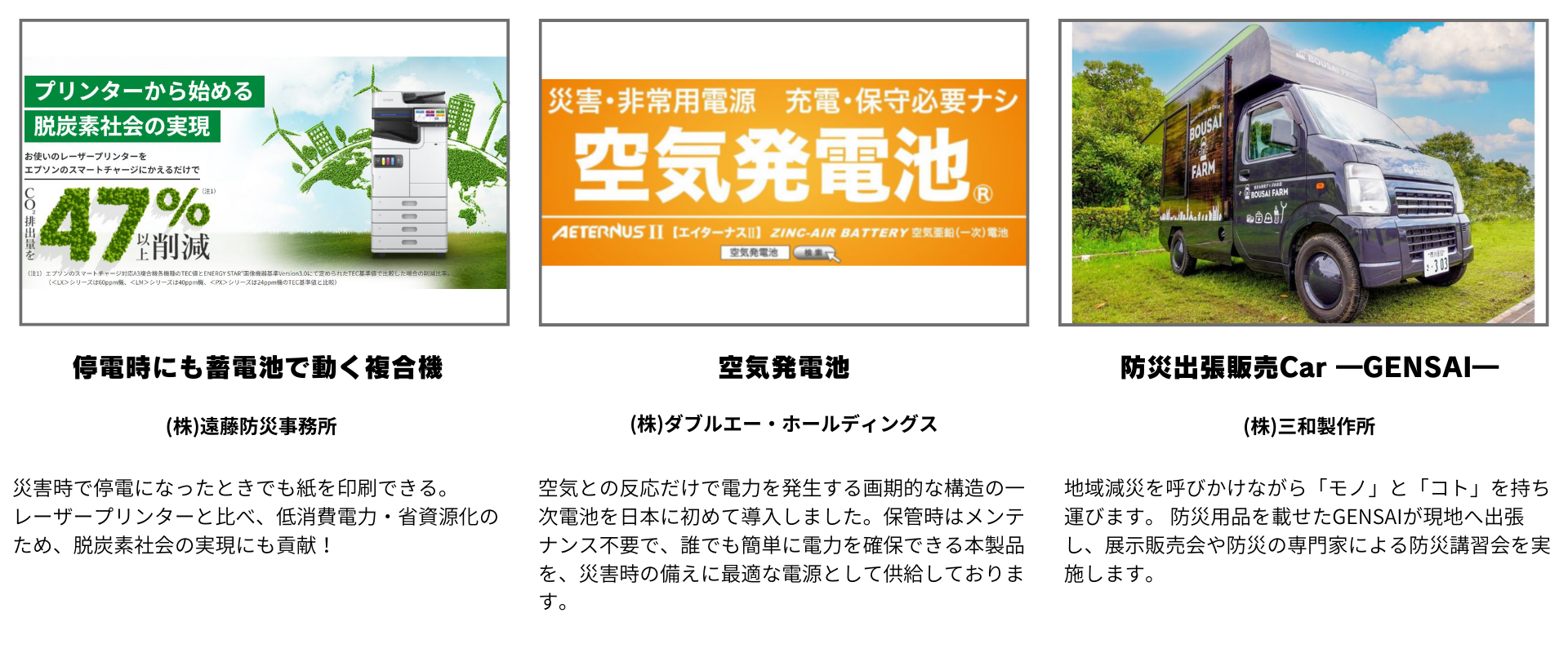 本展では、災害対策はもちろん、他のSDGs目標にも関連する、環境にやさしい製品も出展します。