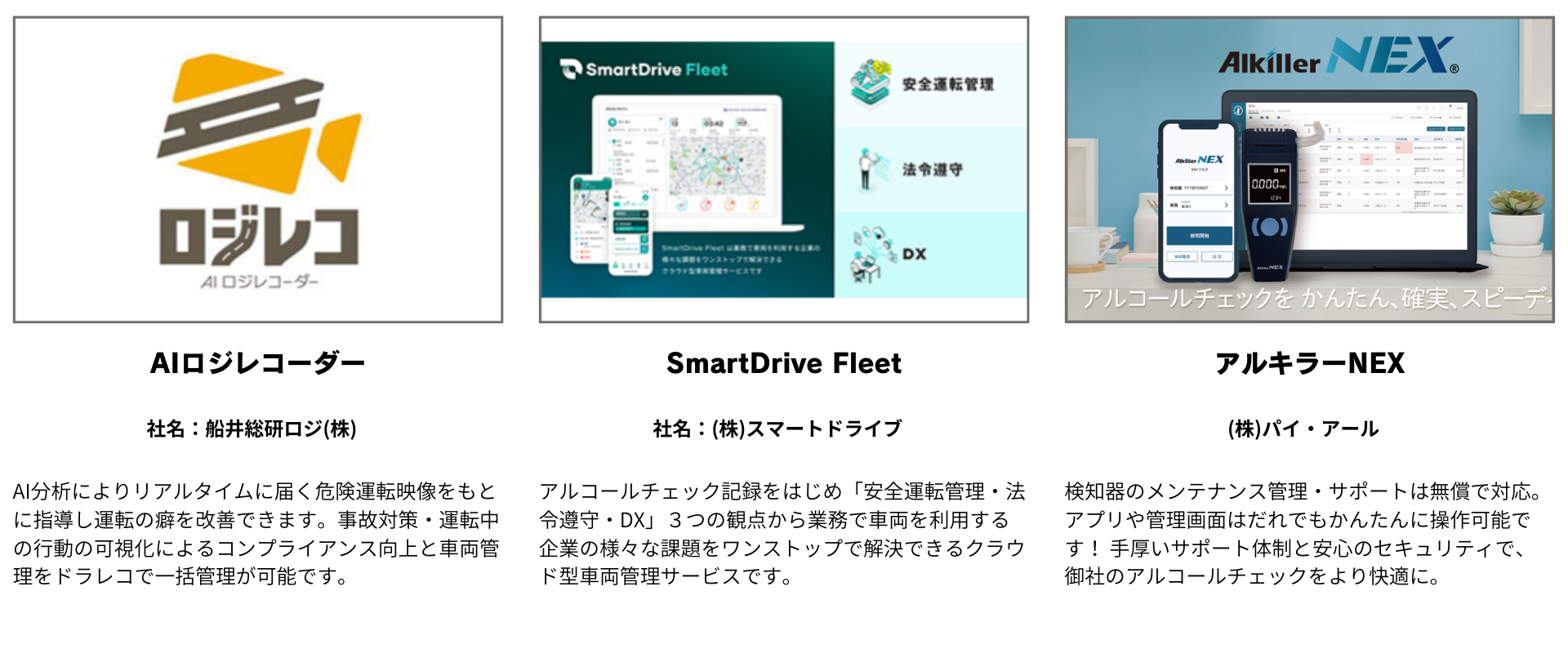 12月1日より、アルコール検知器による飲酒検査が義務化となります。いよいよ始まる義務化へ向け、アルコール検知器や車両管理サービスなどが出展。