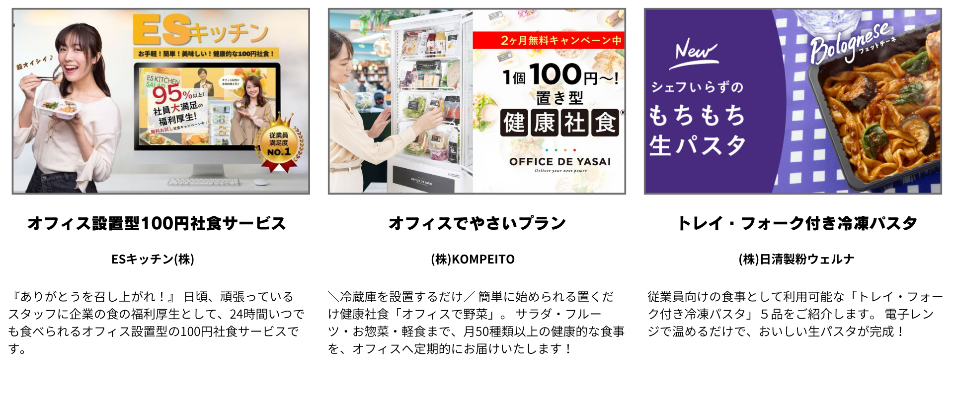 社員食堂や宅配弁当・置き型社食など、「健康経営」の取り組みとして、従業員の食事サポートを実践する企業も多いです。本展には、バラエティに富んだ社食サービスが多数出展いたします。