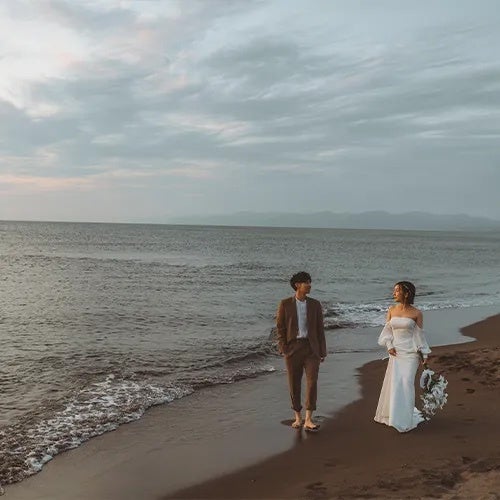 「ロケーション撮影」と聞くと、少しハードルが高そうに感じるかもしれません。でもご安心ください。私たちは、お二人の「こんな場所で撮ってみたい!」という想いを叶えるために、全力でサポートします。撮影場所の提案から、移動手段、衣装、小物、ヘアメイクまで、すべてお任せください。プロの視点で、お二人らしさを最大限に引き出すロケーションをセレクトし、最高の瞬間を切り取ります。