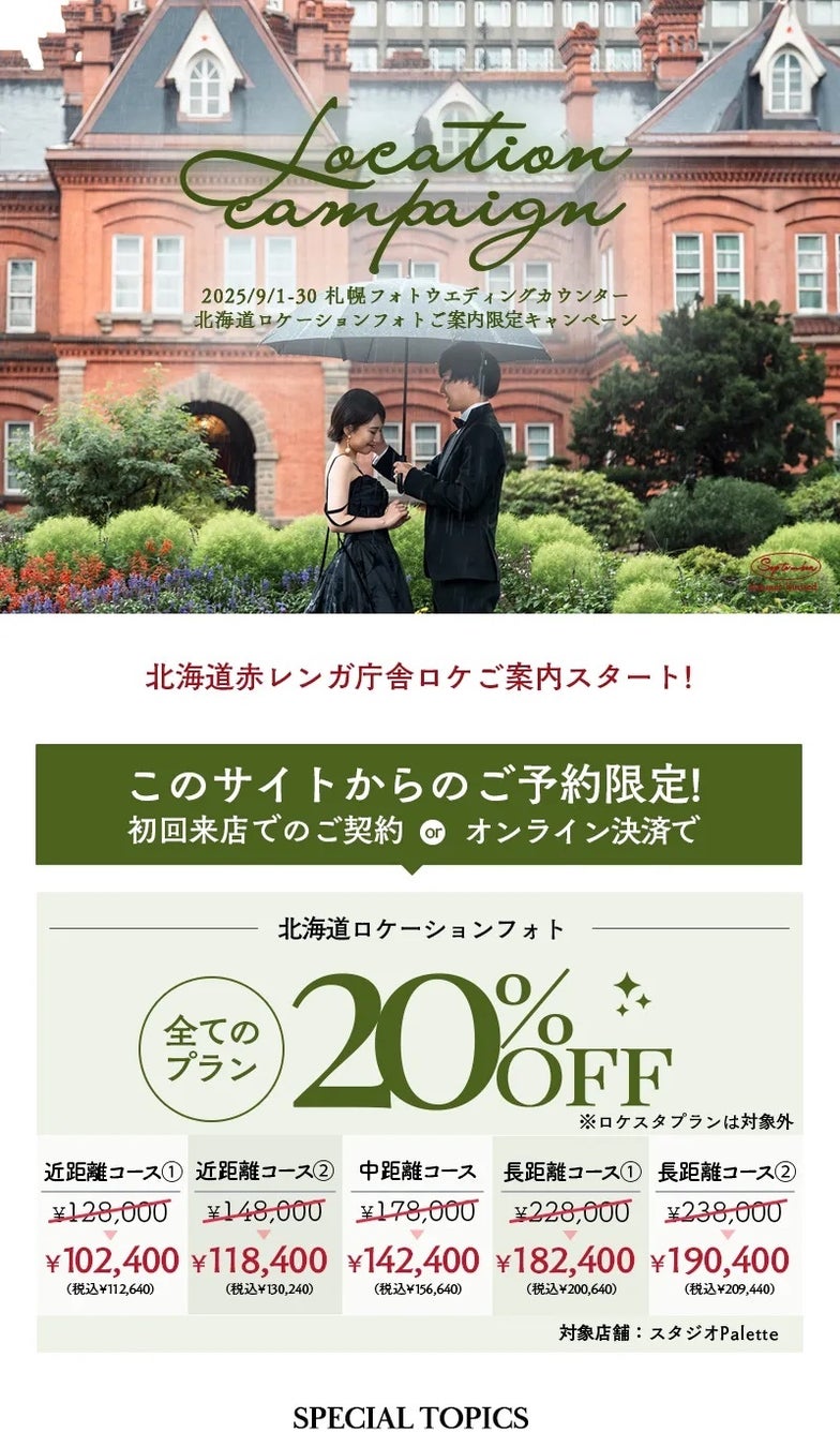 弊社運営サイト「札幌フォトウエディングカウンター」(https://hanayome.me/)を、ロケーション撮影仕様にリニューアルいたしました。