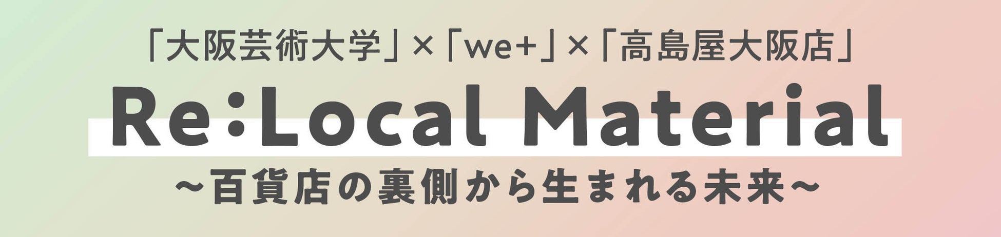 高島屋大阪店では、高島屋のサステナブル・アクション「TSUNAGU ACTION」の一環として、10月8日(水)~28日(火)の21日間に産学連携プロジェクト『Re:Local Material~百貨店の裏側から生まれる未来~』を行います。