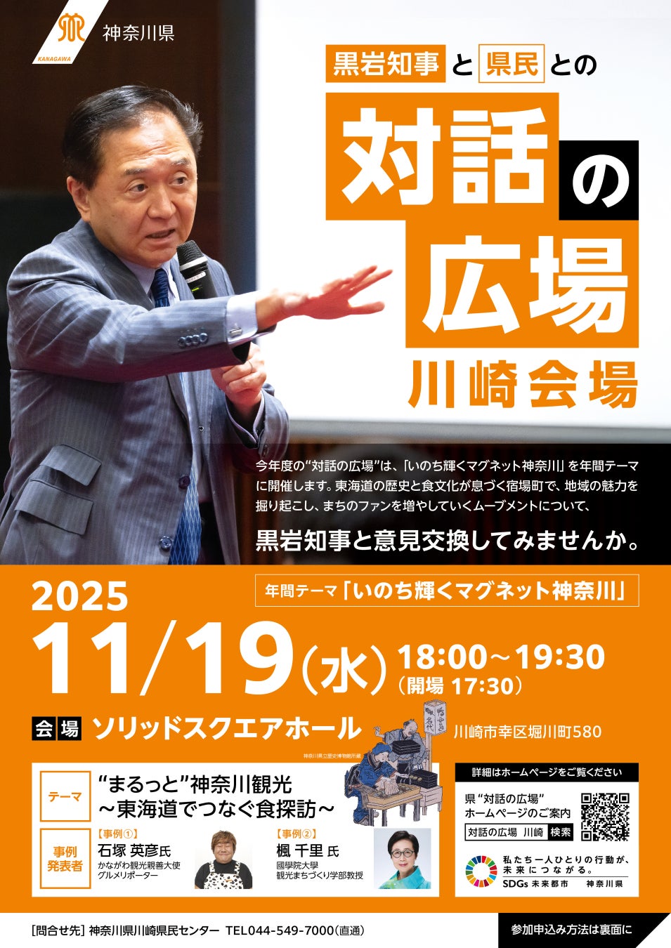 黒岩知事と県民との“対話の広場”川崎会場(11月19日)の参加者大募集!ゲストにグルメリポーターの石ちゃん登場!
