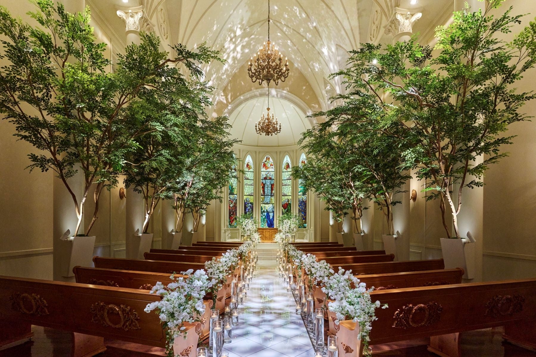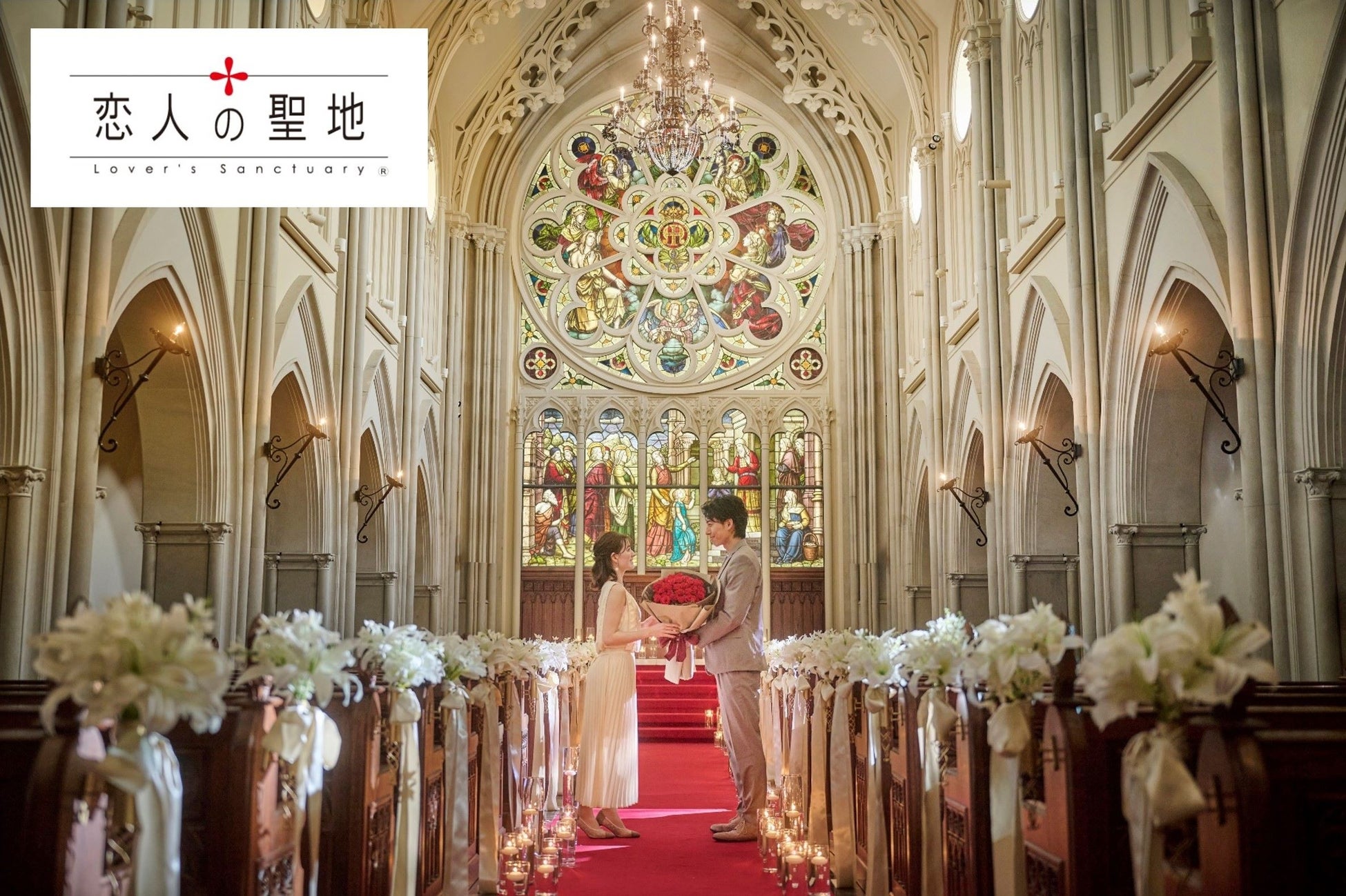 ドラマや映画のロケ地としても人気の結婚式場。130年の歴史を刻むステンドグラスと大理石のバージンロードが自慢の大聖堂をふたりだけで貸し切ったプロポーズが叶います。