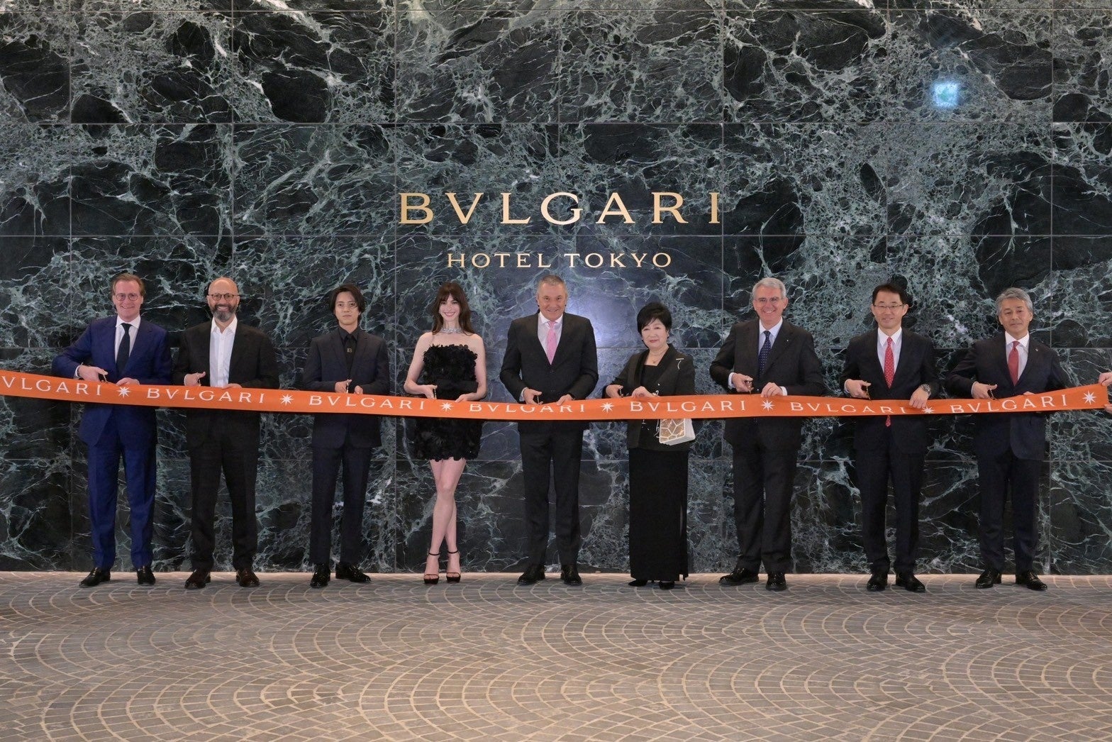 オープンに先立ち開催されたリボンカッティングには、ブルガリ グループ CEO ジャン-クリストフ・ババンが小池百合子東京都知事、ジャンルイジ・ベネデッティ駐日イタリア大使、俳優・ブルガリのグローバルアンバサダーのアン・ハサウェイ、俳優・アーティストの山下智久、三井不動産株式会社 常務執行役員ホテル・リゾート本部長の川村豊を迎え、ブルガリ グループ エグゼクティブ・バイスプレジデントのシルヴィオ・ウルシーニ、「ブルガリ ホテル 東京」の総支配人 田中雄司、ブルガリ ジャパン 代表取締役社長ヴィンセント・ライネスが加わり、盛大に実施されました。