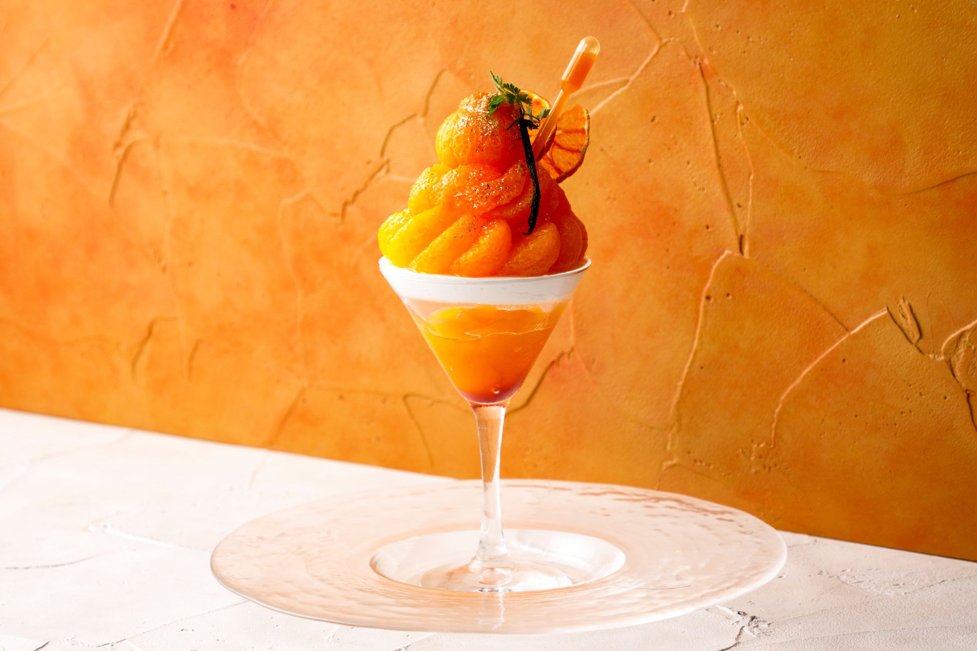 フルーツ王国・山梨で旬を迎えるぶどうと、追熟され甘みを増した秋カボチャの季節限定パフェ。パフェの顔となるトップには、今や国民的人気フルーツとして名高い山梨県産の「シャインマスカット」や、山梨で生まれた高級品種ぶどう「甲斐路(かいじ)」をふんだんに使い、クリスピーな食感が楽しい山梨県産カボチャのクリスティアン、ぶどうのシャーベットやバニラアイスを贅沢に盛り込んだベストマッチな組み合わせ。山中湖畔の紅葉をイメージした秋らしい色合いが目を惹くレイヤー部には、カボチャ本来の甘みを楽しめるムースや、爽やかに香るぶどうのジュレを使用。食べ進める途中に添えられたシナモンスティックでかき混ぜると、シナモンの香りとカボチャがよく合い、味の変化をお楽しみいただけます。