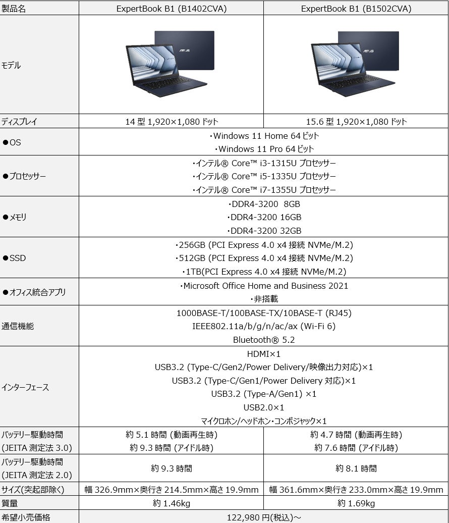 ビジネス向けノートPC「ExpertBook B1」をカスタマイズ可能な「ASUSのオーダーメイド」を開始