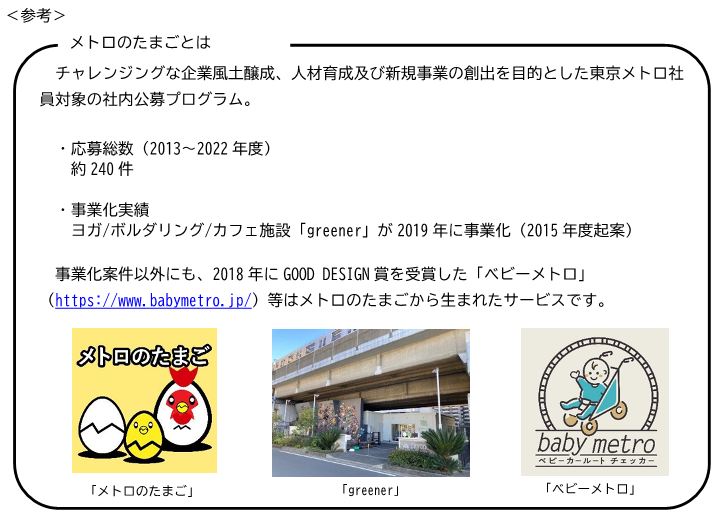 ※スケートボートパークは、新規事業の創出を目的とした社内事業開発プログラム「メトロのたまご」で提案されたもので、提案を行った東京メトロ社員が本事業の検討・運営に携わっています。