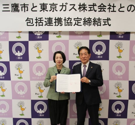 三鷹市(市長:河村 孝)と東京ガス株式会社(社長:笹山 晋一)は、このたび、ゼロカーボンシティの実現に向けた事業および防災・減災のまちづくりを推進することを目的に包括連携協定(以下「本協定」)を締結しました。