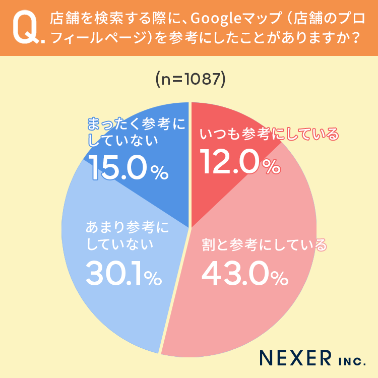 最後に店舗を検索する際、Googleマップ(店舗のプロフィールページ)を参考にしたことがあるか聞いてみました。