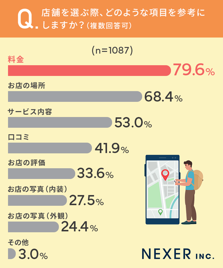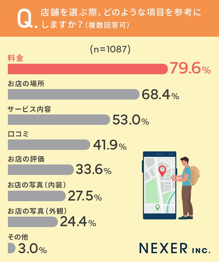 ■79.6%が店舗を選ぶ際に参考にしている項目は「料金」