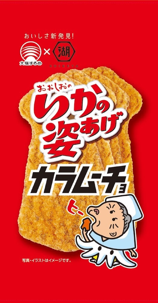 株式会社湖池屋(本社:東京都板橋区/社長:佐藤章)は、辛味スナックの代表ブランド「カラムーチョ」において、株式会社合食(本社:兵庫県神戸市/社長:砂川雄一)が展開する大塩するめブランドの「いかの姿あげ」とコラボレーションを実施し、昨年に引き続き、株式会社合食より「いかの姿あげカラムーチョ」が2022年7月4日(月)からの期間限定で発売されます。