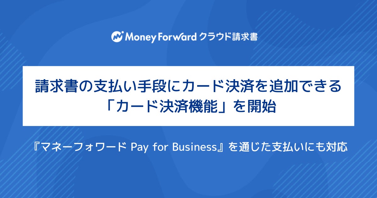 株式会社マネーフォワードは、請求書管理ソフト『マネーフォワード クラウド請求書』において、発行した請求書の支払い手段にカード決済を追加できる「カード決済機能」の提供を開始します。