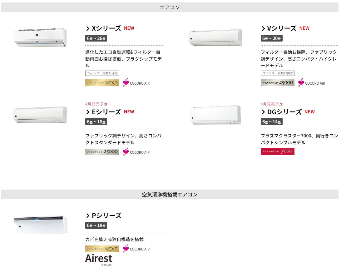 シャープにはさまざまな部屋に合うエアコンが豊富にラインアップ。