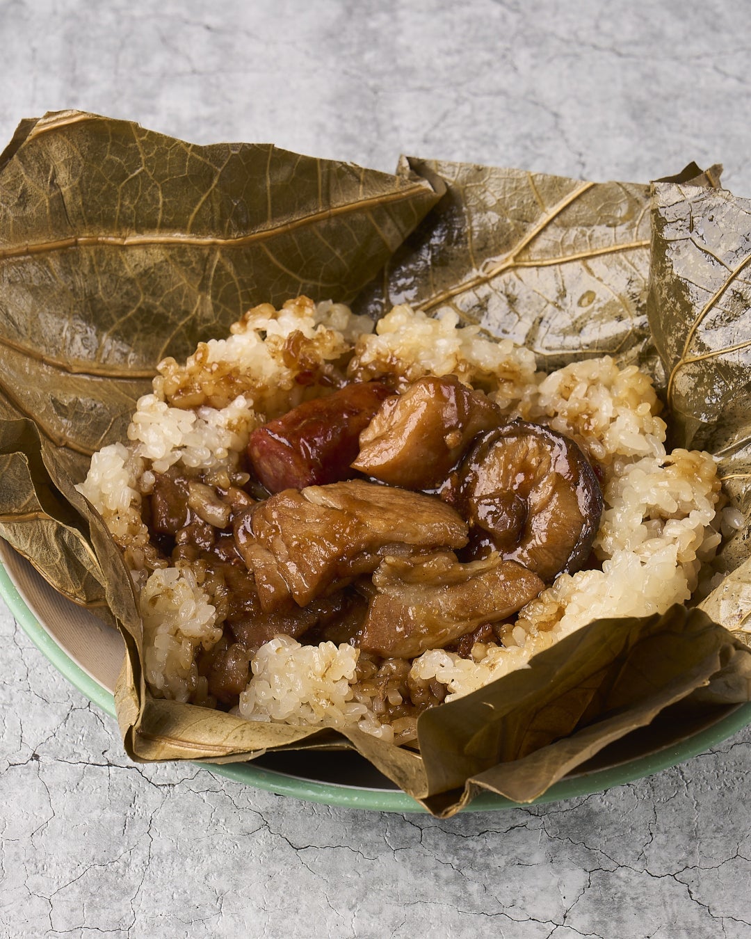 もち米と鶏肉、豚肉などを香り豊かな蓮の葉で蒸した、ボリュームも魅力の一品。