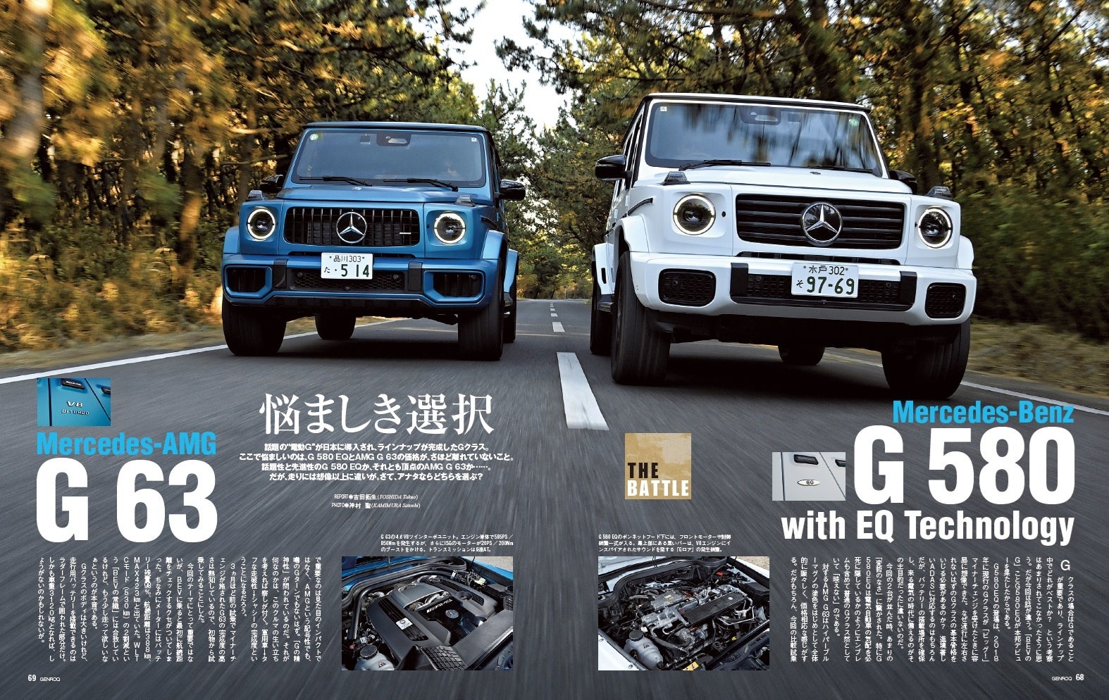 話題の“電動G”が日本に導入され、ラインナップが完成した新型Gクラス。ここで悩ましいのは G 580 EQ と AMG G 63 の価格がそれほど離れていないこと。話題性と先進性の G 580 EQ か、頂点の AMG G 63 か……。だが、走りには想像以上に違いが。さて、アナタならどっち!?