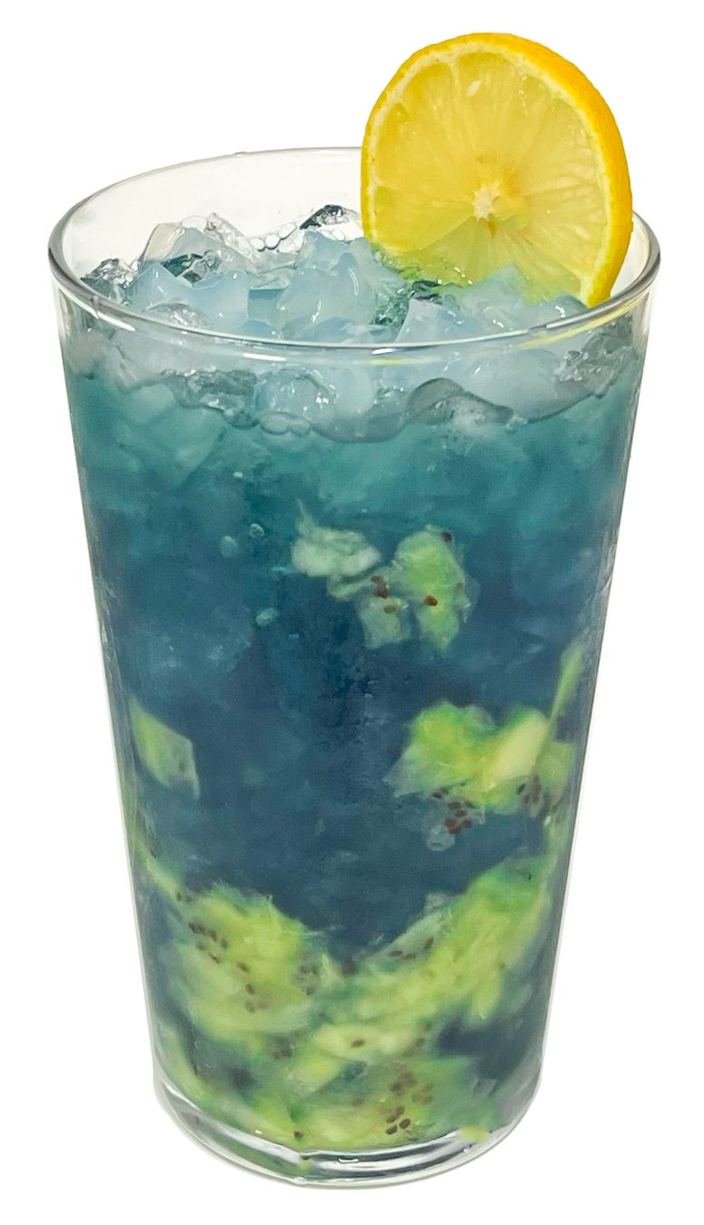 天文学を追い求めた人々と彼らが見上げた満点の星空をイメージしています。一等星をナタデココ、くず星をキウイ、惑星を輪切りレモンで表現し、カクテル全体で漆黒の夜空で輝く満点の星を描いています。