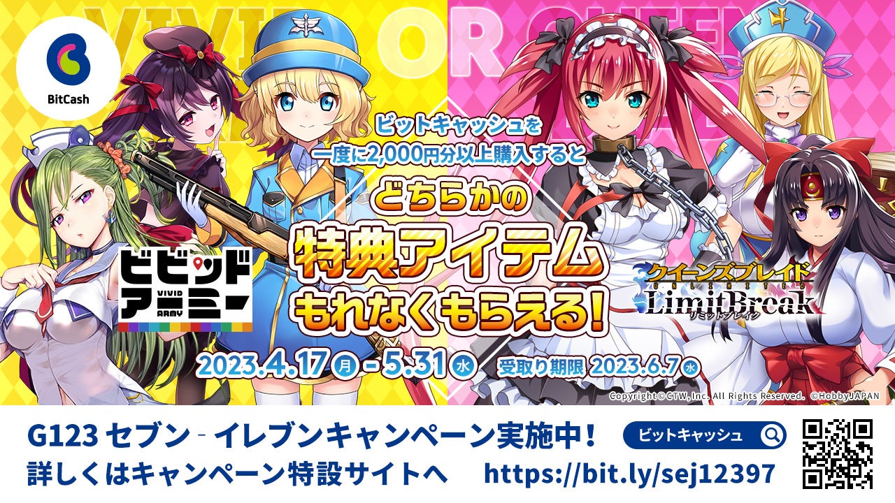 ■「G123 セブン-イレブンだけの限定キャンペーン!」好評開催中!ビットキャッシュを購入すると『クイーンズブレイドリミットブレイク』または『ビビッドアーミー』で使える豪華アイテムをGET!