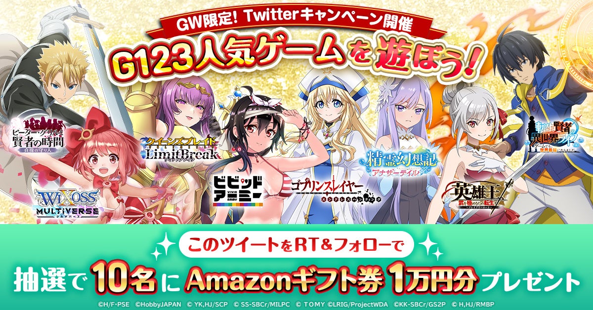 G123から配信中のゲームも大人気!それぞれGW限定イベントも開催します。この機会にぜひ遊んで下さい!