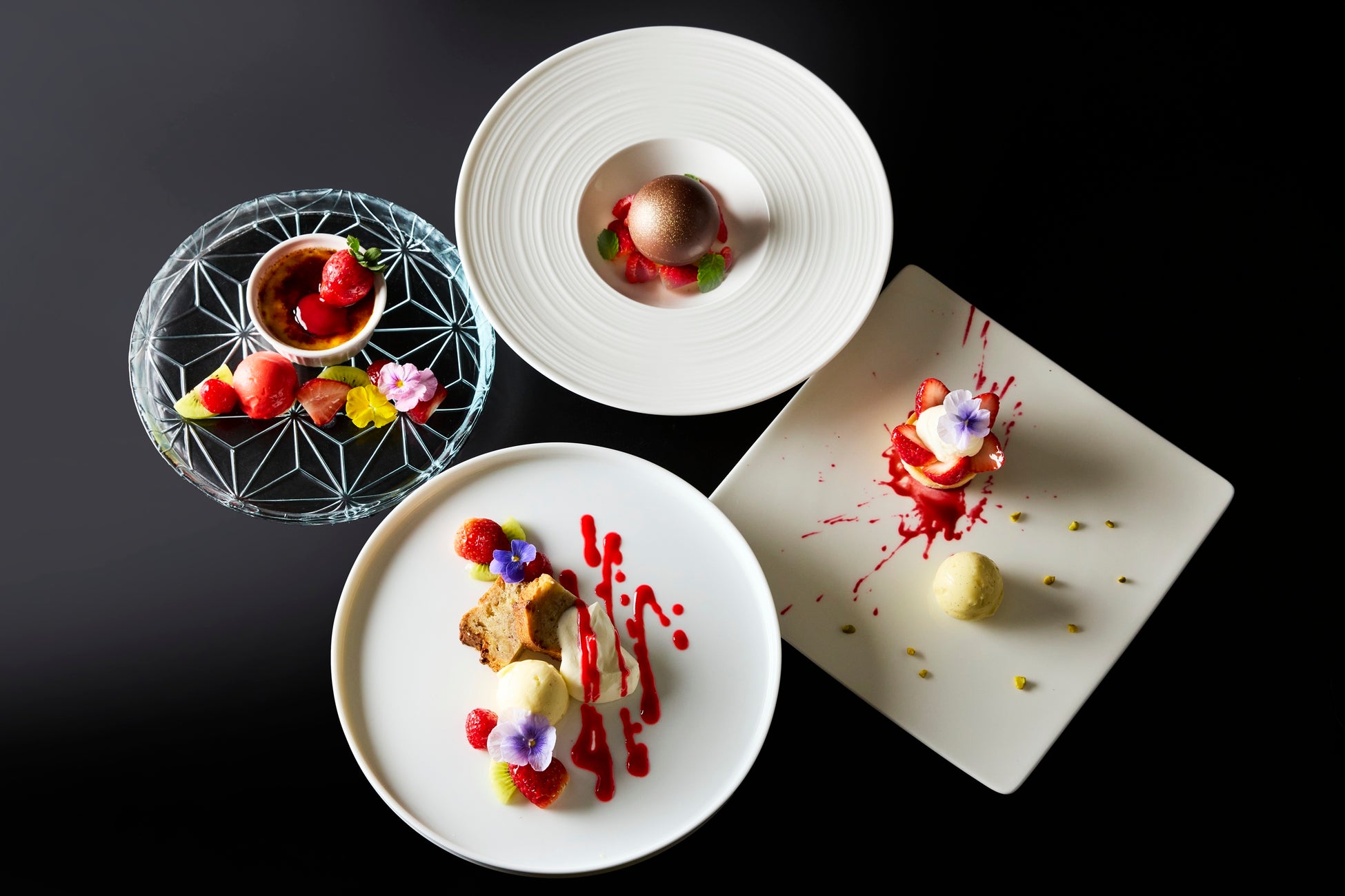 ・バニラクレームブリュレ ストロベリーソース フランボワーズシャーベット添え